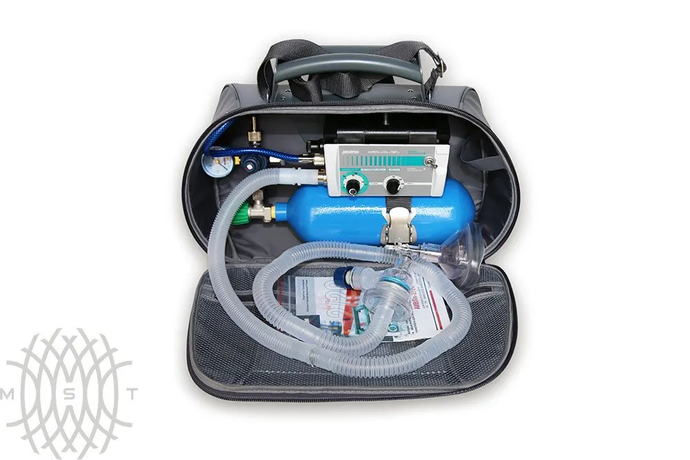 Пневматический аппарат для искусственной вентиляции легких и ингаляции кислородом и кислородно-воздушной смесью при дыхательной реанимации в специализированном мед. транспорте различного назначения, на месте происшествия, на дому. Подходит для взрослых и детей с 6 лет.