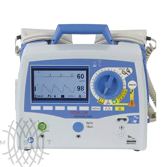 Shiller DEFIGARD 4000 — современный дефибриллятор с бифазным импульсом с технологией Multipulse Biowave, которая позволяет выбирать уровень энергии от 2 до 200 Дж. Прибор идеально подходит для эксплуатации как в стационаре, так и в машинах скорой помощи. В компактном корпусе реализованы новейшие технологии для эффективной наружной дефибрилляции, кардиосинхронизации, мониторинга ЭКГ.