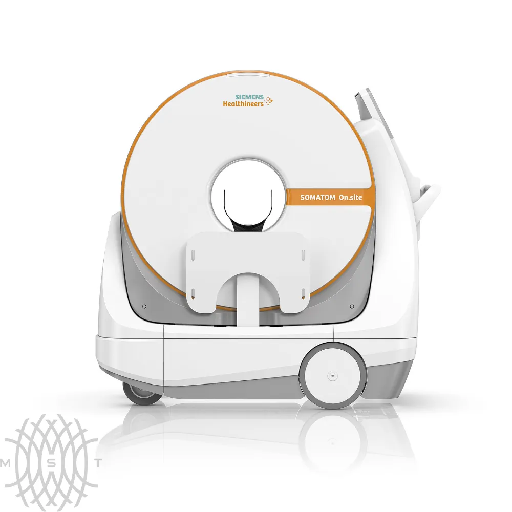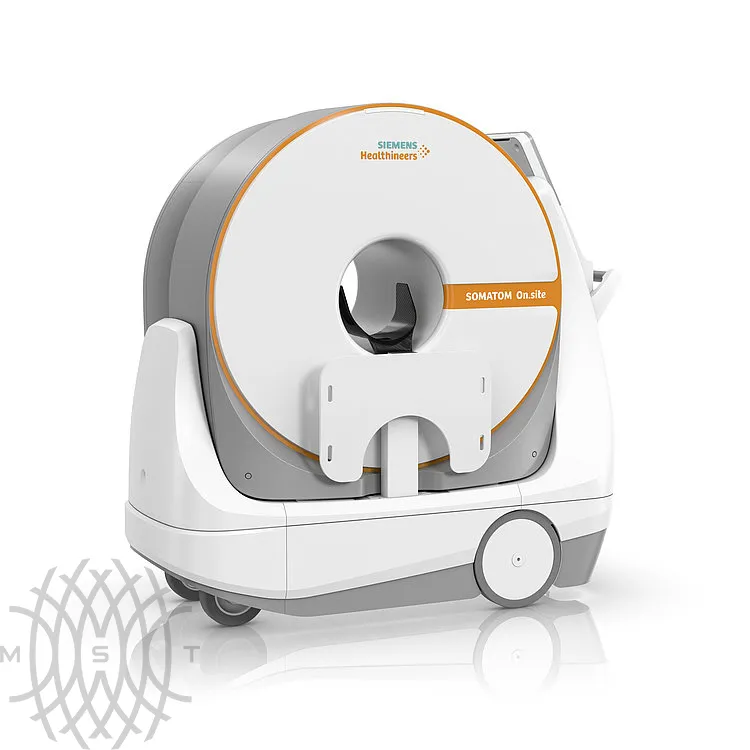Siemens Somatom On.site — мобильный компьютерный томограф. Портативная система избавляет от необходимости доставлять пациентов в кабинет рентгенолога, позволяя выполнять сканирование прямо у постели больного. Somatom On.site оснащен держателем для головы, который обеспечивает позиционирование пациента.