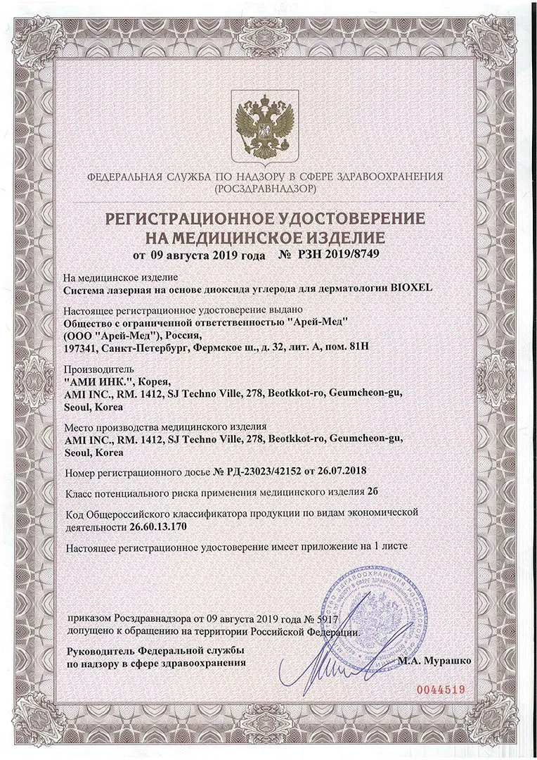 Фракционный c гинекологическим модулем BIOXEL — первый в России CO2 лазер с автоматическим модулем для гинекологии от корейской компании A.M.I. (Aesthetic Medical Innovator). Это многофункциональная система, применимая не только в косметологии, но и в гинекологии и общей хирургии. Благодаря технологичному фракционному сканеру и комплекту хирургических насадок, лазер обладает гибкими настройками, позволяя осуществлять широкий спектр процедур от удаления новообразований кожи до фракционного омоложения и лазерных шлифовок различного уровня воздействия.