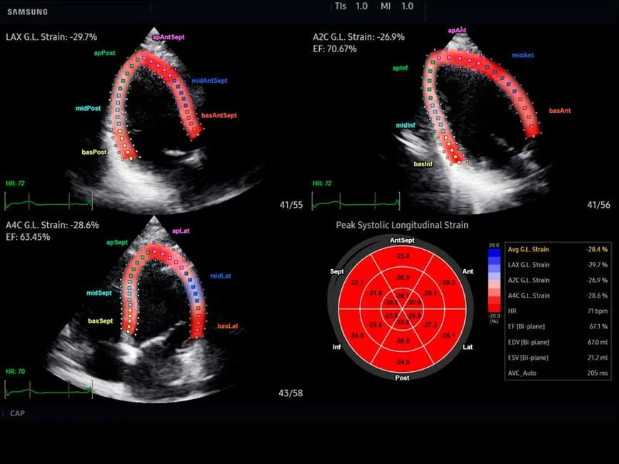 • Модуль Strain+ — недоплеровская методика количественной оценки глобальной и локальной сократимости левого желудочка сердца.