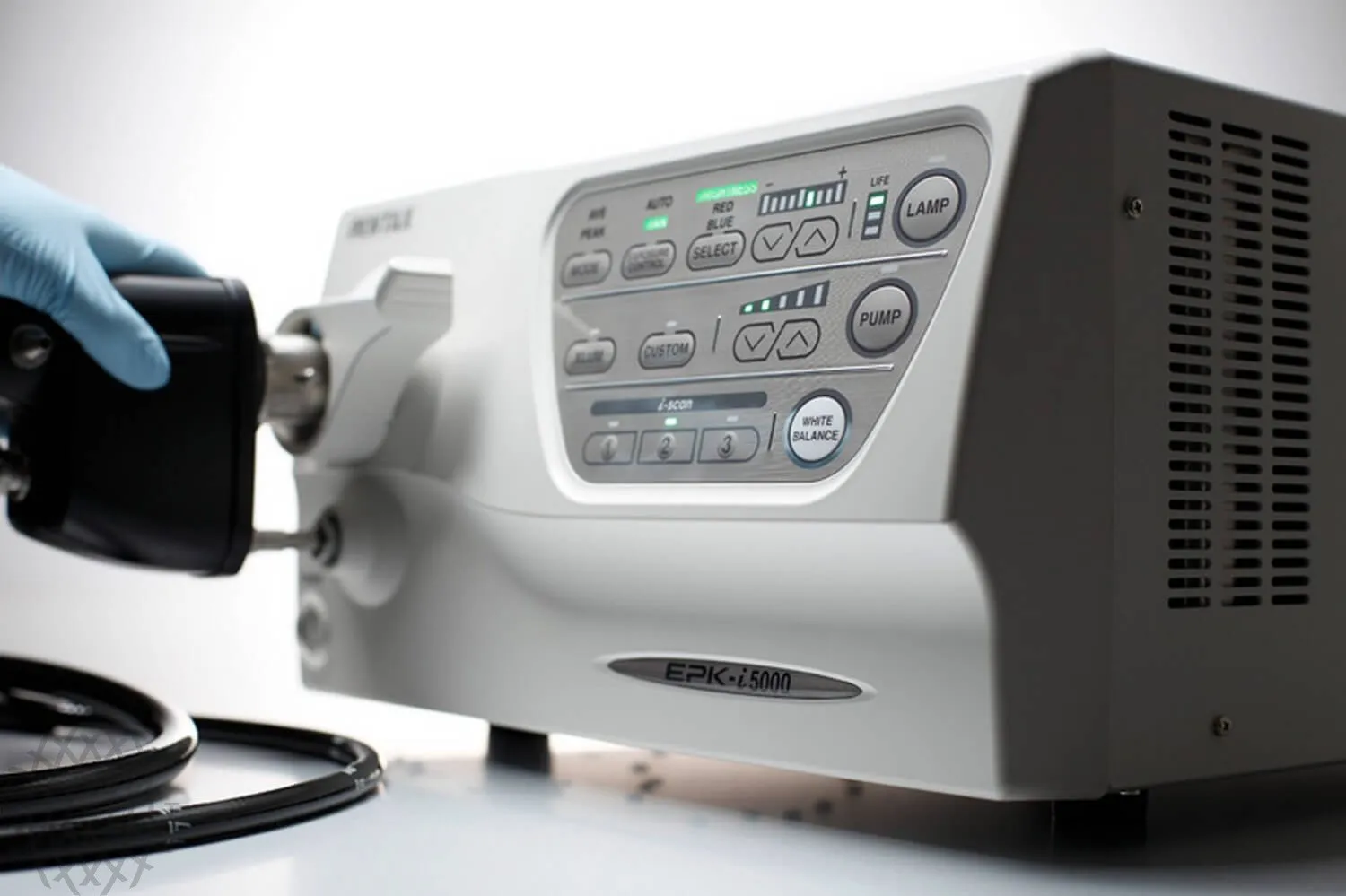 Передняя панель видеопроцессора EPK-i5000 была разработана для обеспечения лёгкого доступа к основным свойствам. Все основные функции могут управляться через легко идентифицируемые кнопки, а также существует индивидуально настраиваемая кнопка для функций, предпочитаемых врачом. Дополнительные продвинутые параметры доступны через встроенное клавиатурное меню.